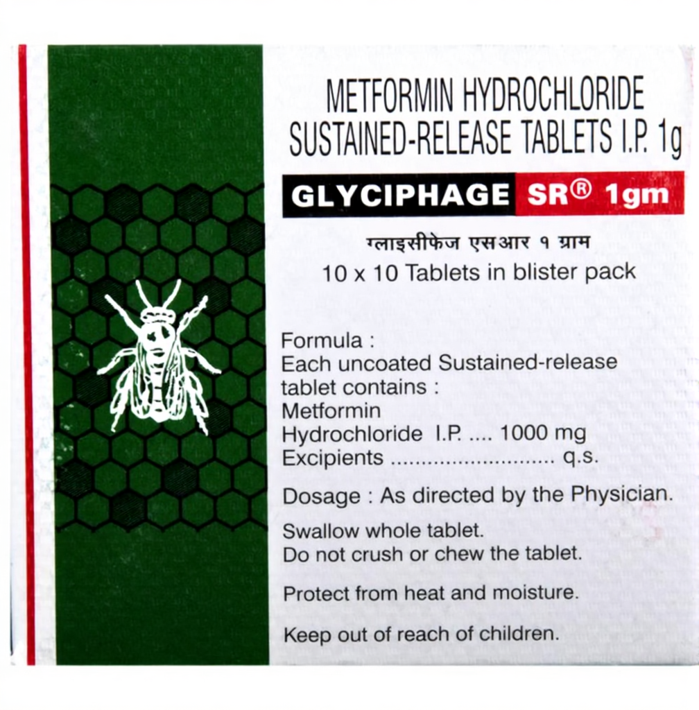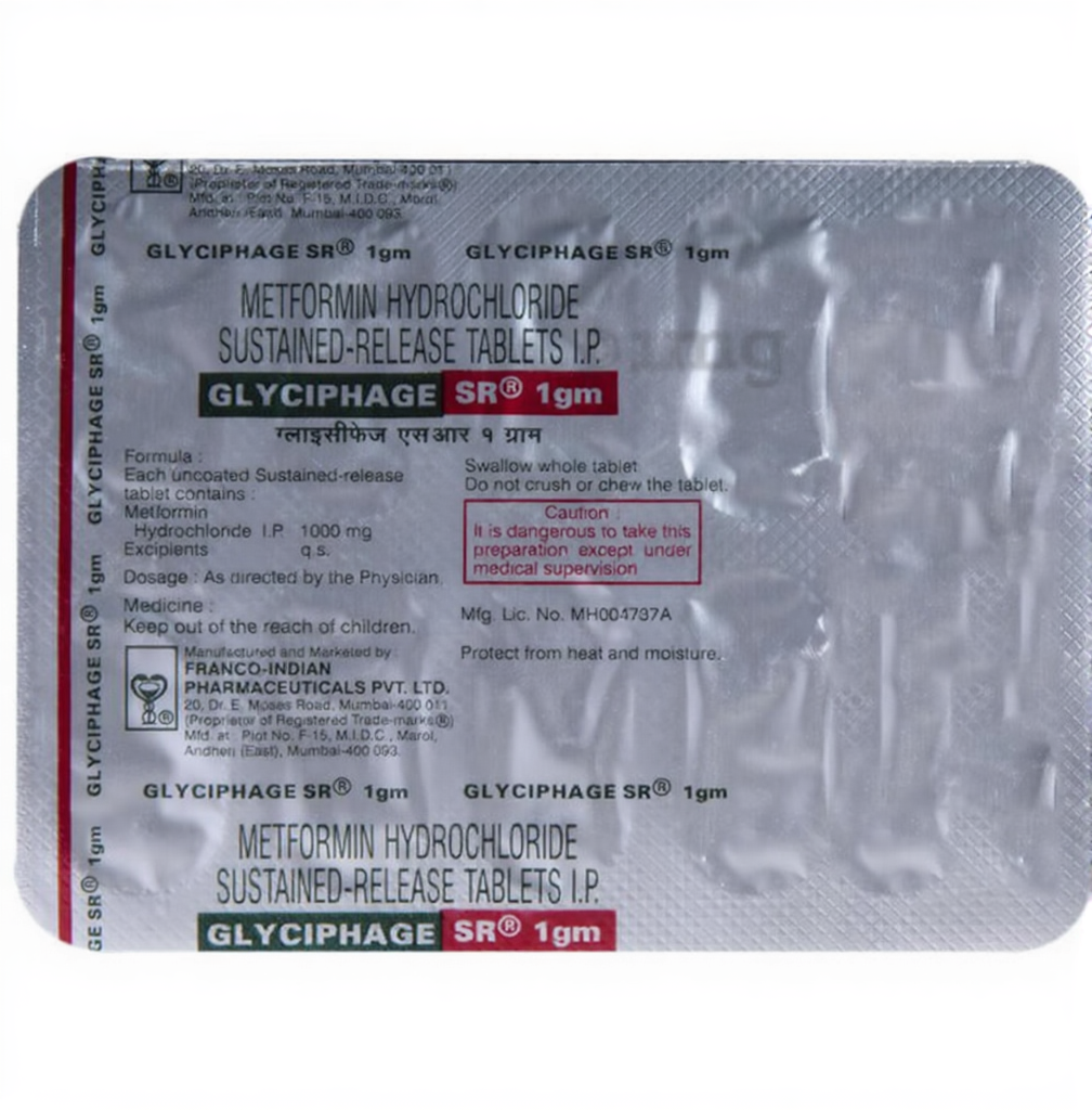 Glyciphage SR 1gm Tablet is commonly prescribed for the management of type 2 diabetes mellitus. By helping regulate blood glucose levels, it plays an important role in reducing the risk of long-term diabetes-related complications. In addition to diabetes, this medicine is also used in women to manage polycystic ovary syndrome (PCOS), a condition linked to hormonal imbalance and irregular menstrual cycles.